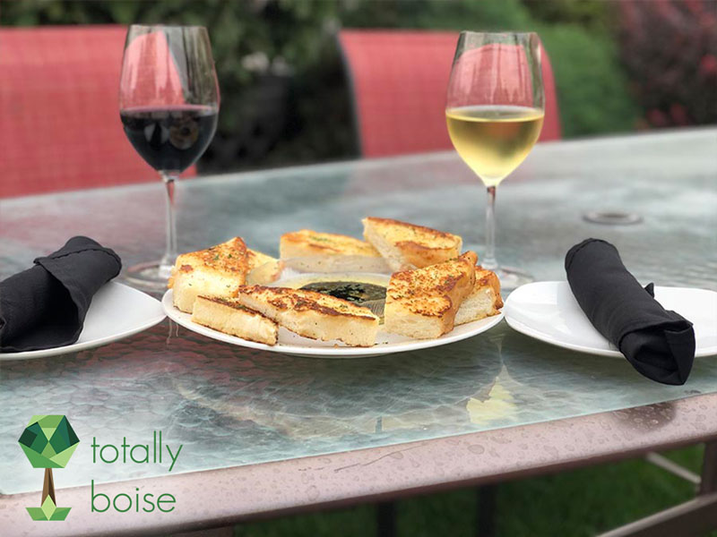 Divine Wine, Cork & Fork offers a menu filled with small plates, salads, and entreé dishes. Totally Boise got the chance to try some of the delicious food on the menu. Totally Boise recommends starting with classic garlic bread and olive oil/vinegar and brussel sprout appetizer. The margarita pizza was incredibly delicious and filling off the appetizer menu, while the salmon course was cooked with flavor and the perfect lemon zest.